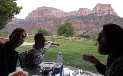 The 4th of October found us in Springdale, Utah and Zion National Park. Wow. Talk about a place to take your breath away! We listened as the thunder rolled through the canon. We played a few tunes in a private concert at the Driftwood Lodge while the rain set the rhythm. It was a magical night. Thanks to Ron's friend, Jason, for making it possible! The next morning we headed out for a short hike and listened to the stories that the peaks and valleys whispered. It was divine.